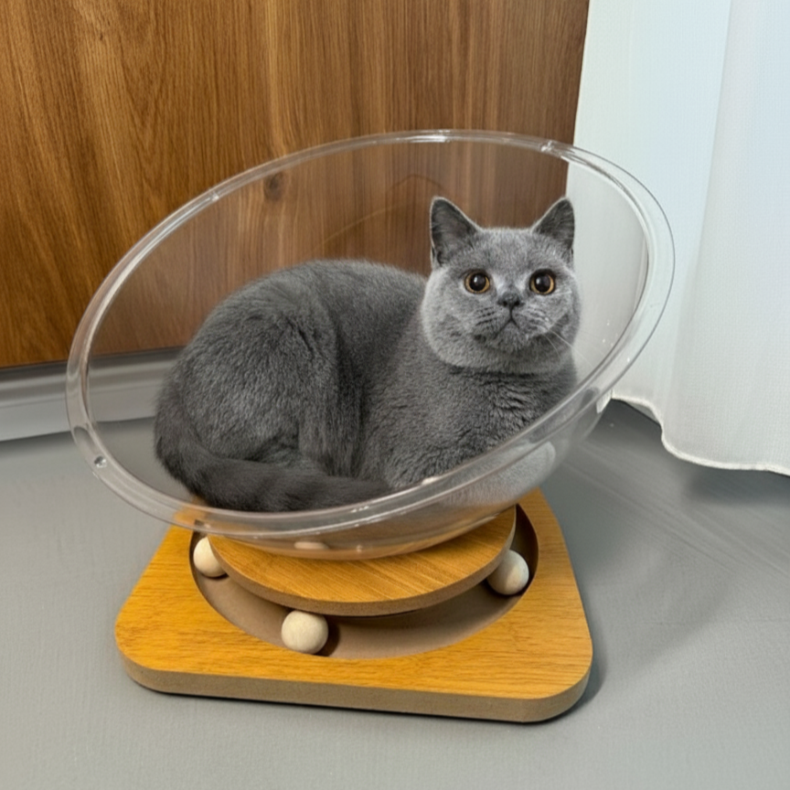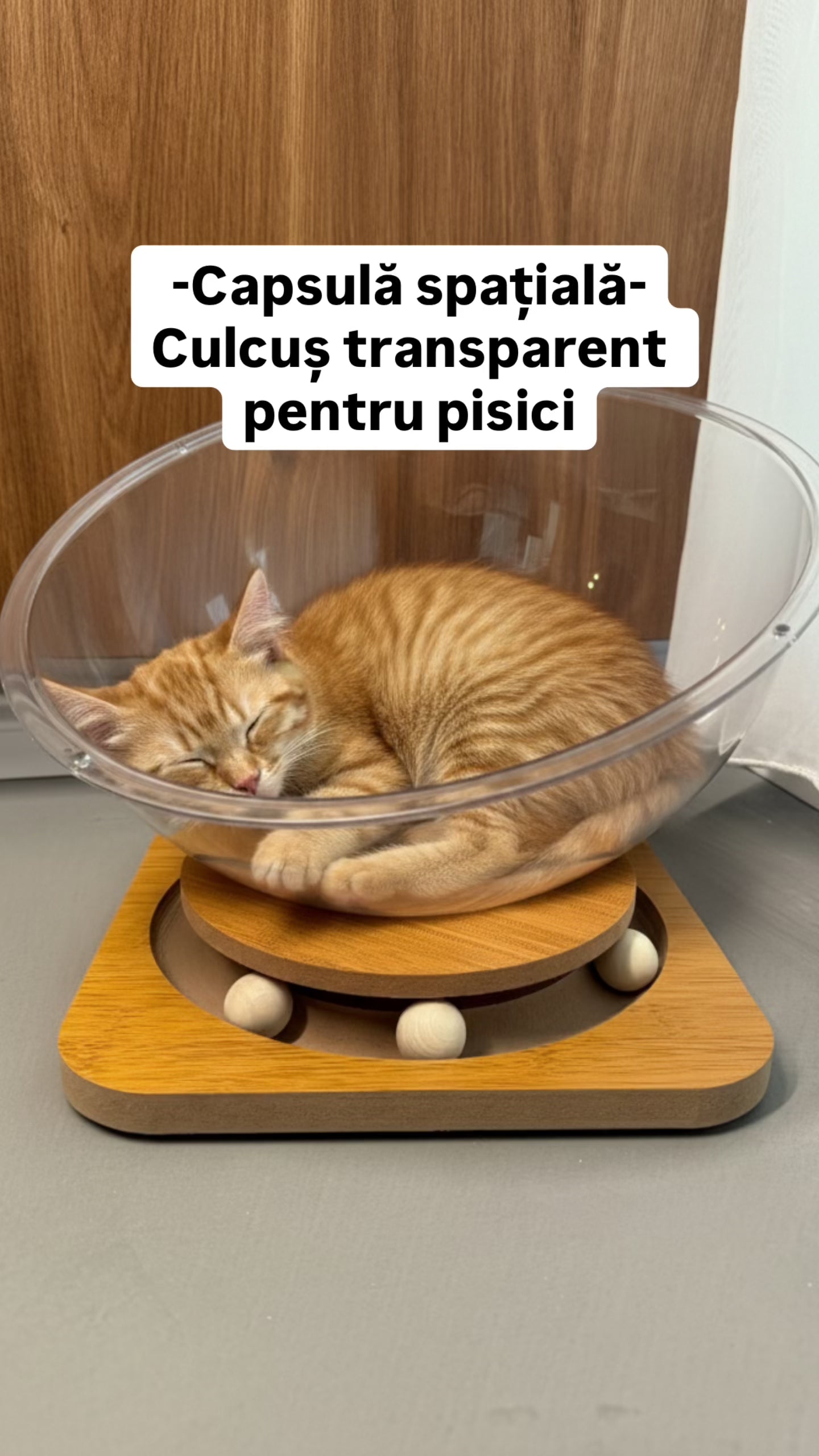 Capsula Spațială este un culcuș transparent, semi-închis, creat special pentru momentele de relaxare ale pisicii tale. Inspirată de formele futuriste ale capsulelor spațiale, această piesă unică combină funcționalitatea cu designul inovator — devenind rapid preferatul pisicii tale și un obiect decorativ cu personalitate.